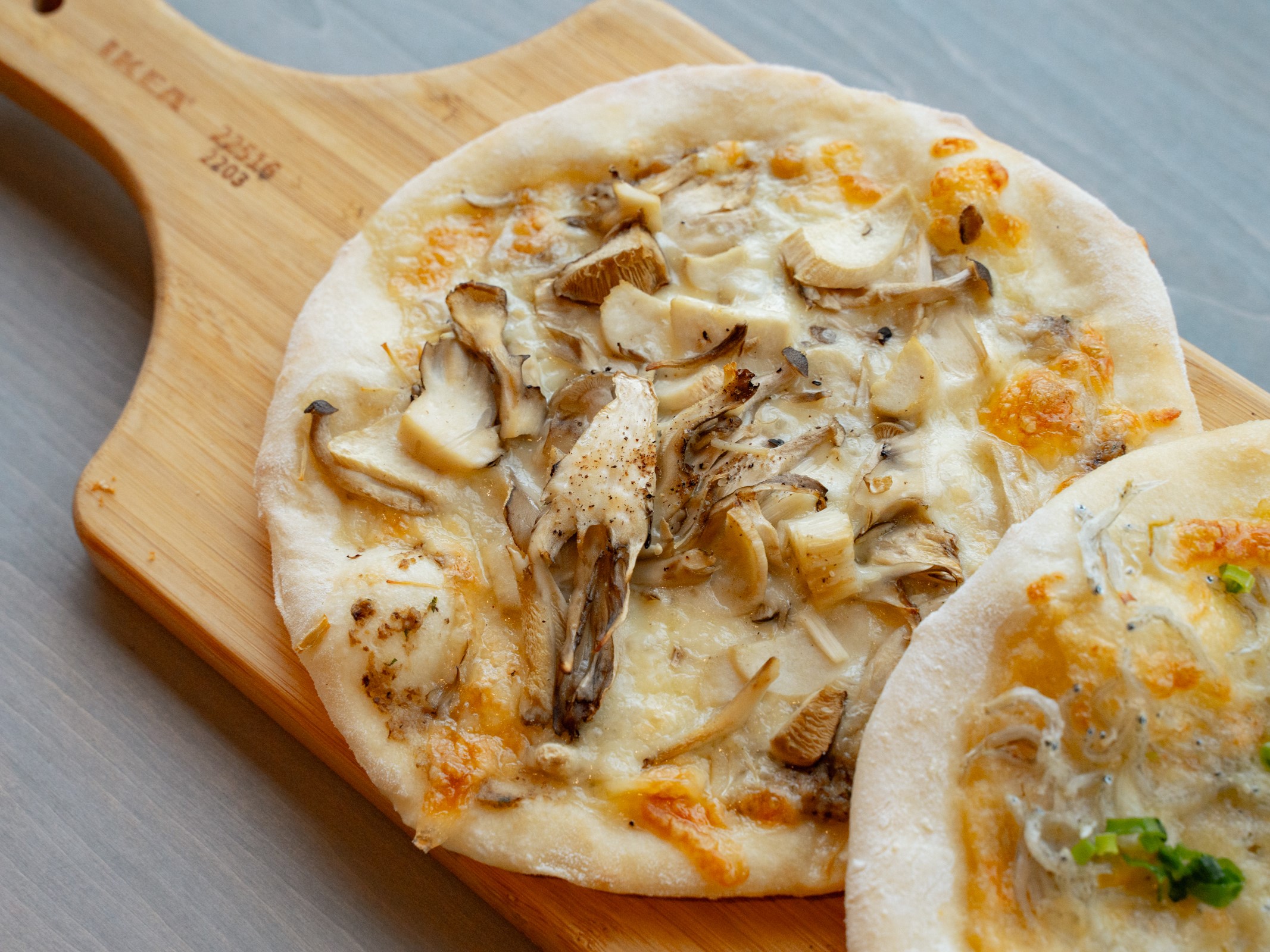 ・しらすとネギのピザ、いろいろキノコのピザ