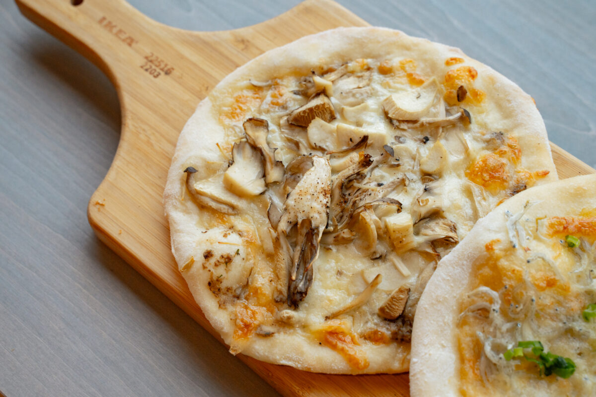・しらすとネギのピザ、いろいろキノコのピザ