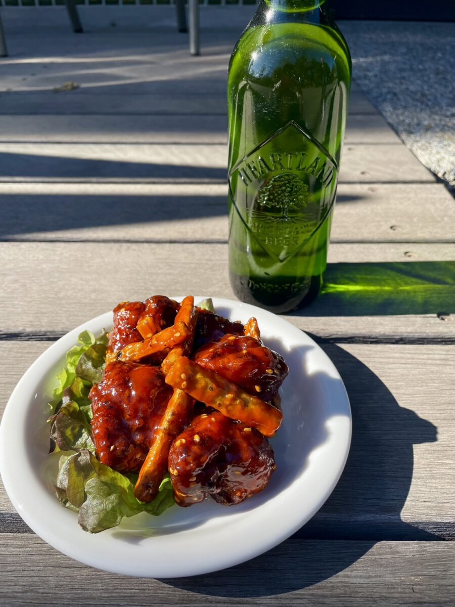 レッスン後は、期間限定のヤンニョムチキン×ビールをお楽しみください。