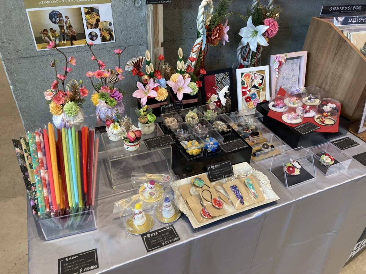 お正月飾りや、つまみ細工のアクセサリーなどを販売しております。