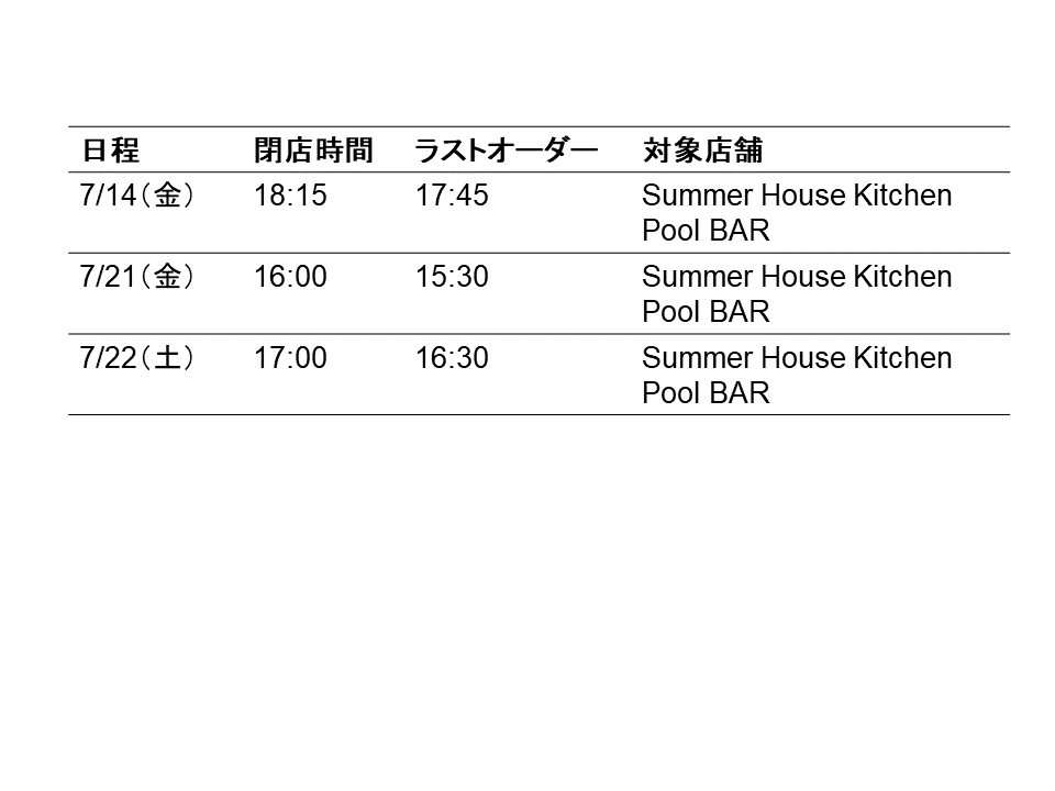 貸切の為、下記日程の営業時間が変更となります。